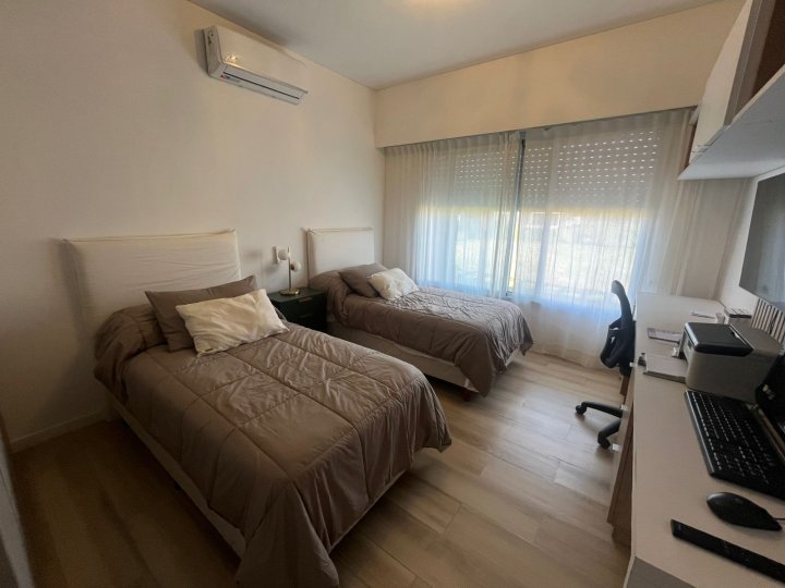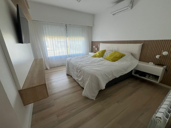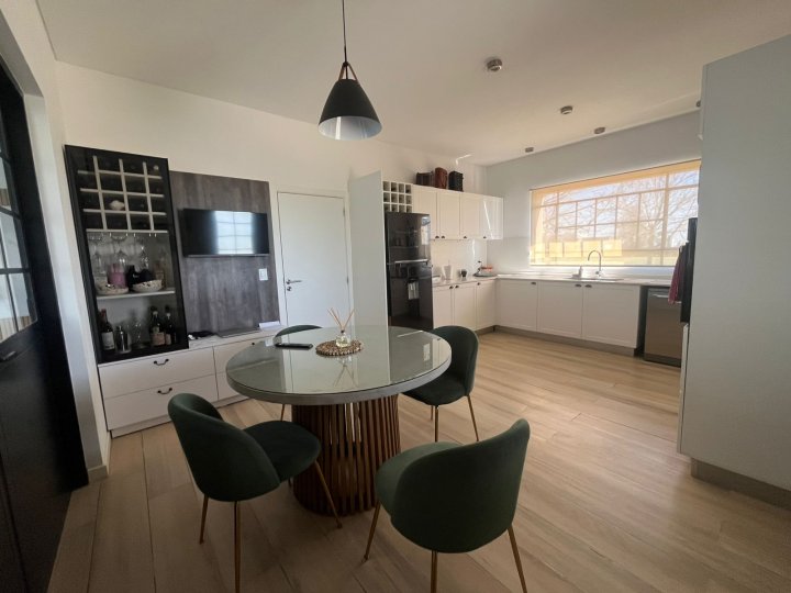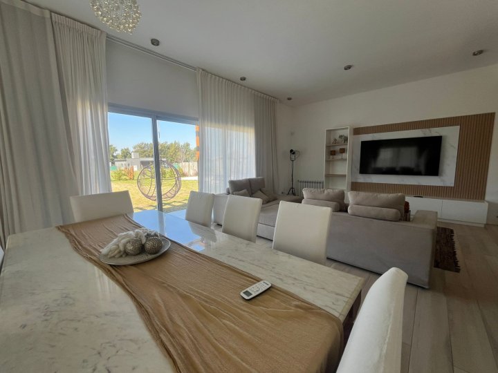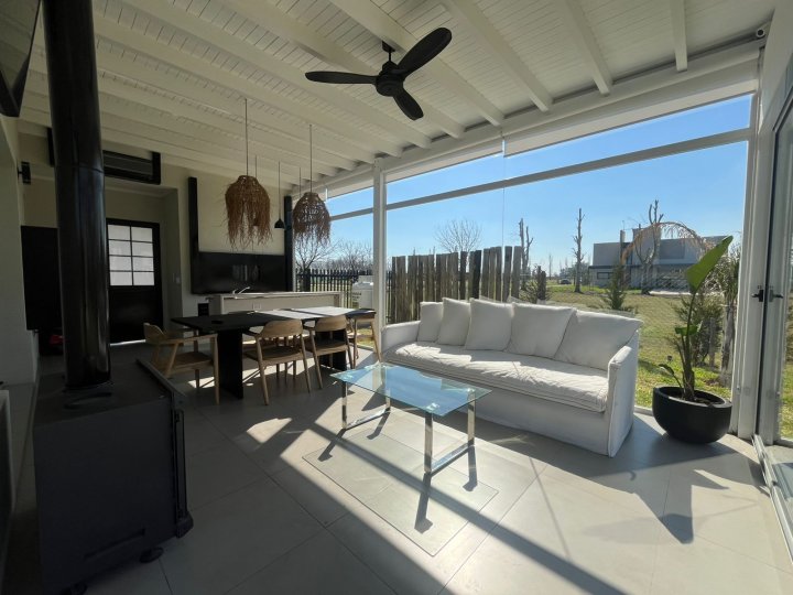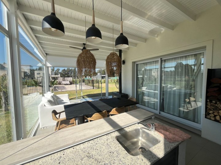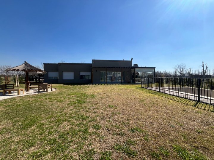 Casa amueblada en Funes. Alquiler permanente en el barrio cerrado Haras de Funes Club de Campo. La casa está desarrollada en una sola planta. Con diseño y decoración ultra moderna. Se ingresa a través de un hall de recepción que conecta el área social de la casa con la de descanso. Por un lado, está el amplio ambiente de living- comedor, con ventanales corredizos que lo vuelven un espacio súper luminoso y con hermosas vistas al gran jardín, y la cocina separada con un acogedor comedor diario. La misma está equipada con anafe a gas, horno empotrado, heladera, lavavajillas y microondas. Por otro lado, un pasillo distribuidor conecta el área de descanso. Cuenta con 3 dormitorios todos con vista al jardín: el dormitorio principal cuenta con vestidor y baño en suite, los dormitorios secundarios son super amplios con placares empotrados con puertas e interiores diseñados; baño completo y lavadero independiente. Además, cuenta con cochera cubierta para 2 vehículos y desde la misma se tiene un acceso secundario a la casa; y al jardín a través de una galería cerrada, con grandes paneles vidriados, que cuenta con baño y está equipada con sector de parrillero, calefactor a leña, ventilador de techo, TV, juego de comedor y living para disfrutarla todo el año. Desde ahí se accede directo al jardín y a la piscina. Esta se encuentra cercada y tiene todo lo necesario (reposeras y camastro) para disfrutarla. También hay un área de fogonero y descanso con sombra. Esta casa es Increíble! Cuenta con radiadores y aire acondicionado en todos sus ambientes. Sistema de alarma y cámaras propias en funcionamiento. Su ubicación dentro del barrio es excelente, sobre calle tranquila y cerca del ingreso principal. Servicios: luz por generador del barrio, gas envasado, sistema de agua con tratamiento de ósmosis propia y agua caliente con caldera dual. El barrio tiene acceso rápido a autopista Rosario-Córdoba, está situado en la zona del barrio Kentucky Club de Campo, el complejo deportivo Damfield y el hípico General San Martín. Cuenta con seguridad 24 hs, SUM de usos múltiples, piscina de niños y adultos, plaza con juego para niños, cancha de futbol y tenis, y un lago rodeado de verde para disfrutar los mejores atardeceres. Si estás buscando vivir rodeado de naturaleza, en una casa moderna y funcional, escribinos y coordinamos una visita. Tenes que alquilarla ya!