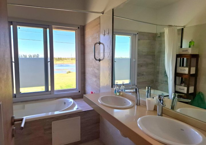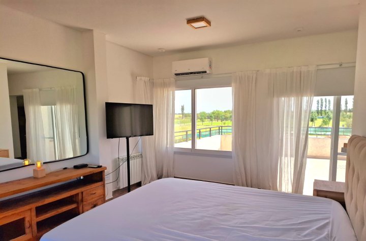 Alquiler temporario! Casa en barrio privado de Funes. PRECIO PUBLICACION para estadias diponibles a partir del 21/02. Consulta por las fechas que necesitas. Estadia minima 7 noches. Una casa super equipada con todo lo que necesitas para disfrutar cada momento. Ingresas a la propiedad y te encontras con un amplio living comedor y cocina integrada con barra desayunadora y posee un baño de recepción completo. En el exterior, tiene lavadero independiente y baño completo para disfrutar de la amplia galería con parrillero y piscina rodeadas de “verde”. Cuenta además con 2 cocheras semicubiertas para vehículos. En planta alta, vas a disfrutar de las hermosas vistas al lago desde una habitación en suite con baño completo, cómodo vestidor y espacio de trabajo! Además, cuenta con dos habitaciones mas que tienen cada una su baño propio! Tiene capacidad para 6 huéspedes. Ubicada frente al lago del barrio privado Haras de Funes, en un entorno natural increíble, en esta casa emplazada sobre un lote de 1000 m2, vas a poder pasar una estadía relajada, tranquila, de descanso y a pleno disfrute este verano. Ademas, el Club de Campo Haras de Funes tiene seguridad 24 hs, generador propio de luz, y entre sus amenities podrás disfrutar de un Club House con fogoneros para disfrutar los maravillosos atardecer, piscina para adultos y niños, y una plaza infantil. Su ubicacion (en la zona de Kentucky Club de Campo y Complejo Deportivo Damfield) es inmejorable para quienes necesitan seguir trabajando en Rosario ya que tiene rápido acceso a la autopista Rosario-Córdoba y está a solo minutos de la zona más linda de Funes, con propuestas recreativas y gastronómicas increíbles para quienes desean vivir la ciudad sin límites. El canon locativo incluye todos los servicios, excepto luz que se abona según consumo. Jardinero y Piletero (1 vez por semana) incluido. Para más información, contáctanos y no pierdas la oportunidad de vivir unos días fantásticos en esta propiedad. Vivi el verano en Funes!!