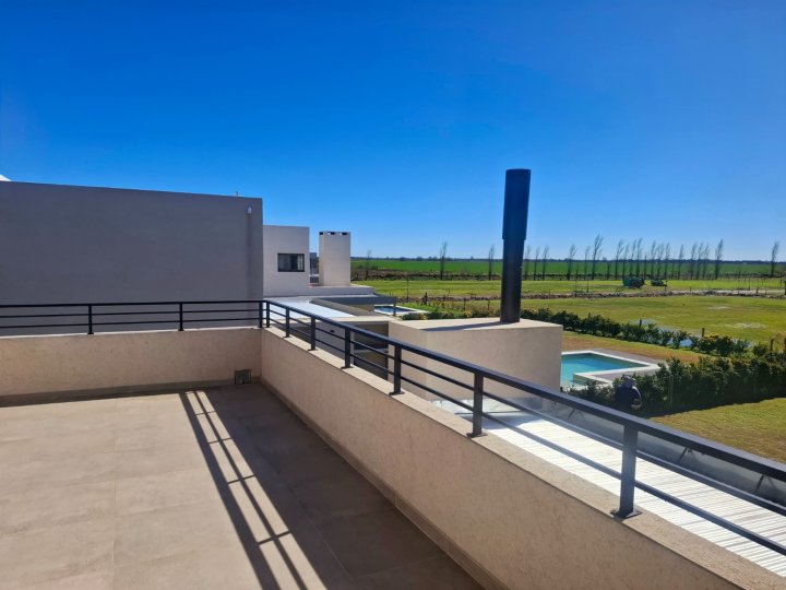 Alquiler temporario! Casa en barrio privado de Funes. Una casa super equipada con todo lo que necesitas para disfrutar cada momento. Ingresas a la propiedad y te encontras con un amplio living comedor y cocina integrada con barra desayunadora y posee un baño de recepción completo. En el exterior, tiene lavadero independiente y baño completo para disfrutar de la amplia galería con parrillero y piscina rodeadas de “verde”. Cuenta además con 2 cocheras semicubiertas para vehículos. En planta alta, vas a disfrutar de las hermosas vistas al lago desde una habitación en suite con baño completo, cómodo vestidor y espacio de trabajo! Además, cuenta con dos habitaciones mas que tienen cada una su baño propio! Tiene capacidad para 6 huéspedes. Ubicada frente al lago del barrio privado Haras de Funes, en un entorno natural increíble, en esta casa emplazada sobre un lote de 1000 m2, vas a poder pasar una estadía relajada, tranquila, de descanso y a pleno disfrute este verano. Ademas, el Club de Campo Haras de Funes tiene seguridad 24 hs y entre sus amenities podrás disfrutar de un Club House con fogoneros para disfrutar los maravillosos atardecer, piscina para adultos y niños, una plaza infantil, dos canchas de tenis y una de futbol. Su ubicacion (en la zona de Kentucky Club de Campo y Complejo Deportivo Damfield) es inmejorable para quienes necesitan seguir trabajando en Rosario ya que tiene rápido acceso a la autopista Rosario-Córdoba y está a solo minutos de la zona más linda de Funes, con propuestas recreativas y gastronómicas increíbles para quienes desean vivir la ciudad sin límites. Se alquila por mes completo. Está disponible: Noviembre, Diciembre y Enero. El canon locativo incluye todos los servicios, excepto luz que se abona según consumo. Jardinero, Piletero y limpieza (1 vez por semana) incluido. Consultar valores segun mes. Para más información, contáctanos y no pierdas la oportunidad de vivir unos días fantásticos en esta propiedad. Vivi el verano en Funes!!
